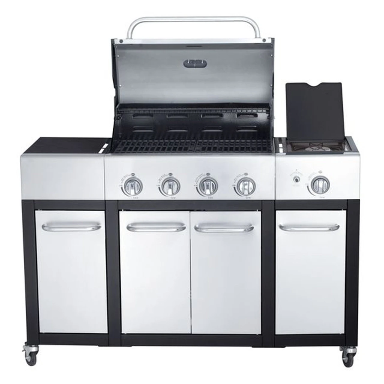 Es stehen Dir 4 Brenner, aus Edelstahl und ein Seitenkocher fĂĽr die Zubereitung fĂĽr Deinen Grillabend.