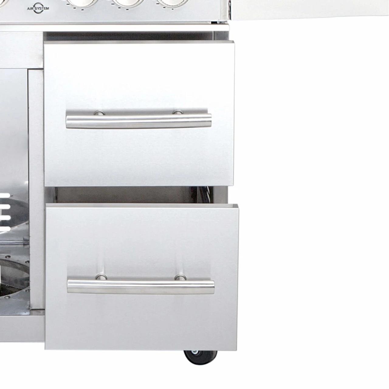 Wenn Du Ordnung liebst oder einfach nur viele Grillwerkzeuge in der Nähe Deines Arbeitsplatzes willst, dann ist das Edelstahl Schubladensystem perfekt für Deinen ALLGRILL CHEF XL Gasgrill.