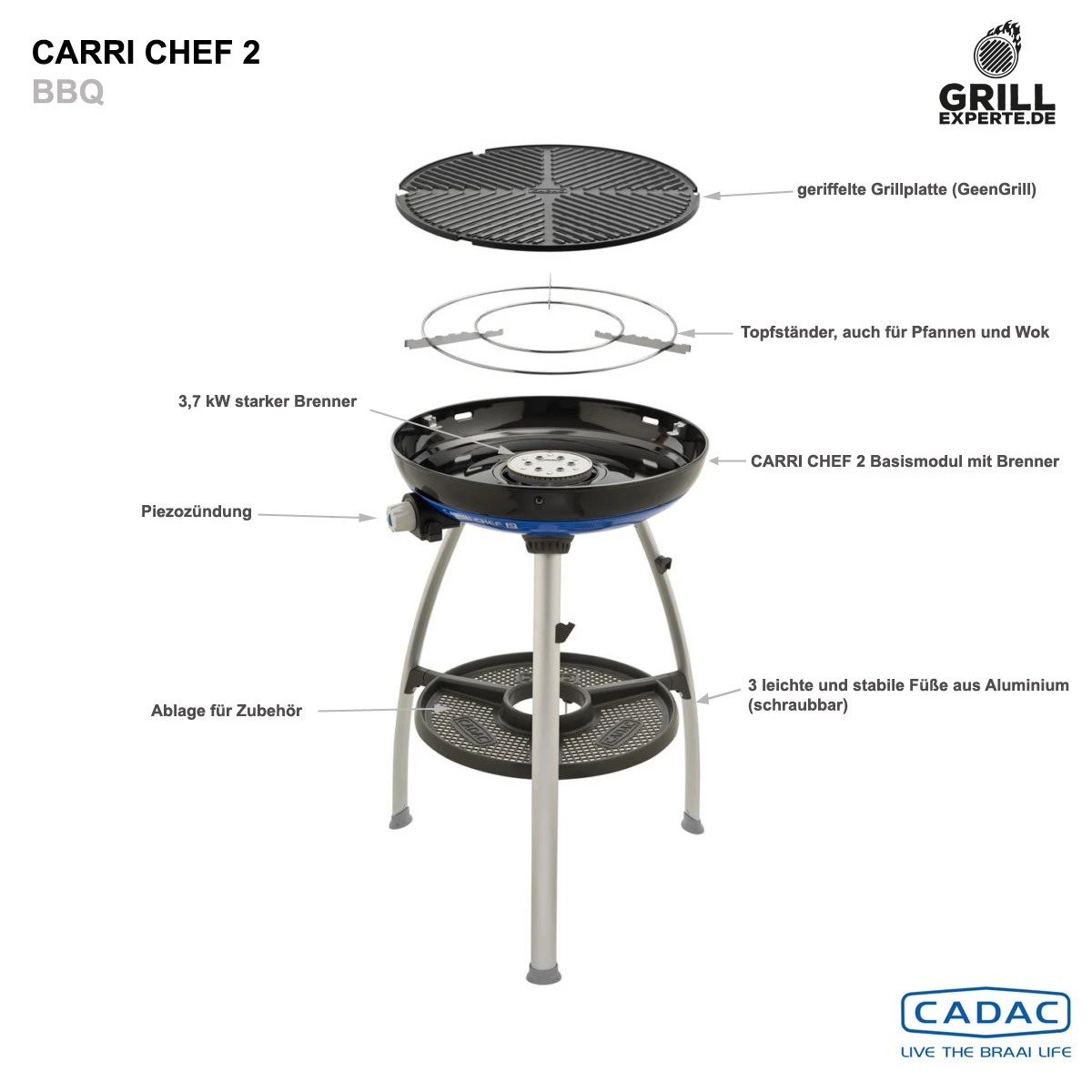 CADAC hat für den CARRI CHEF Ende 2021 eine Namensänderung durchgeführt. Die Modelle CARRI CHEF 2 wurden umbenannt in die Serie CARRI CHEF 50 (die 50 steht für das Zubehör, das je nach Teil einen groben Durchmesser von 47cm aufweist). Die Modelle sind in Form und Funktion gleich der „2“ Version. Lass Dich also nicht verwirren, wenn Du in der Übergangszeit mal CARRI CHF 2 und mal CARRI CHEF 50 hörst und siehst. Gut schmecken tut es bei allen!