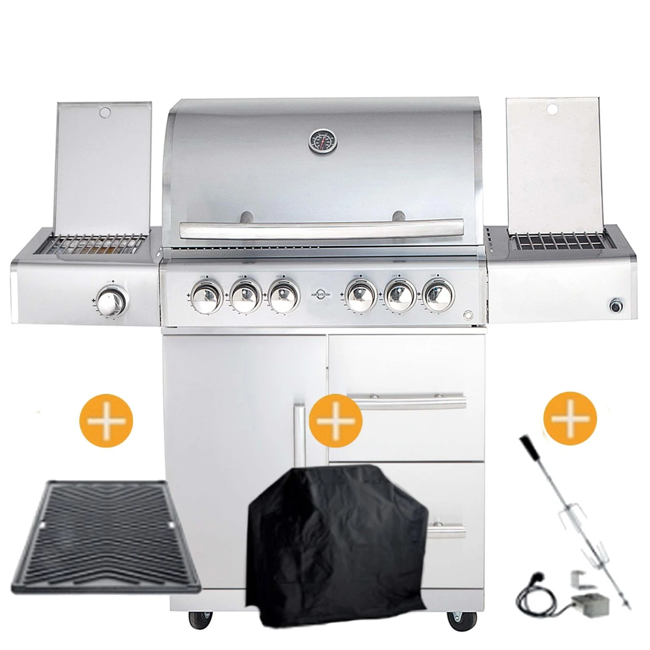 Im ANGEBOT GRATIS MIT DABEI: Wetterschutzhülle, Gußgrillplatte und ein motorisierter Grillspieß