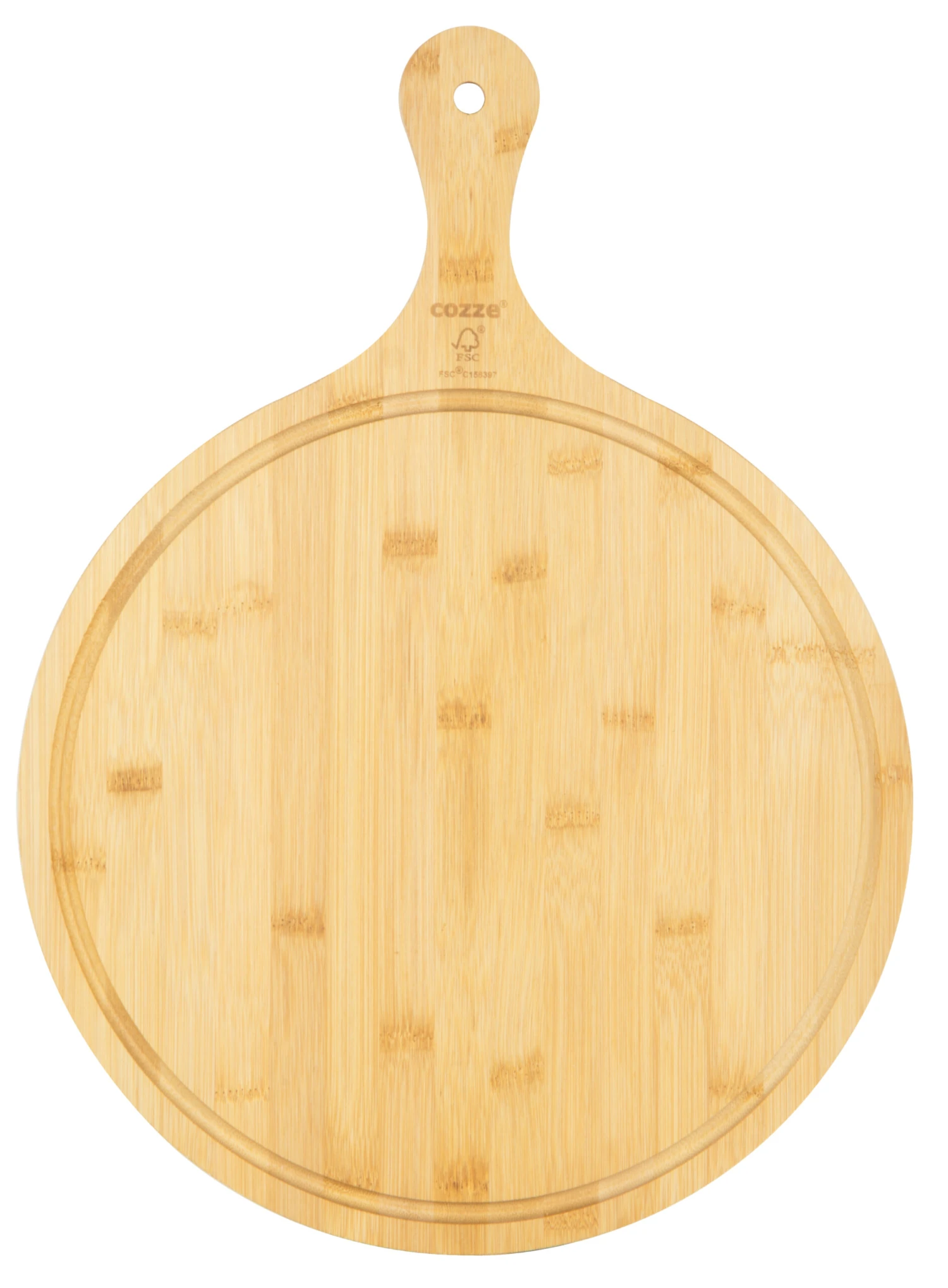 Das Pizzabrett ist aus FSC – zertifiziertem Bambus gefertigt, einem erneuerbaren Material von hoher Qualität. Das stilvolle Schneidebrett mit einem Durchmesser von 350 mm bietet ausreichend Platz für große Pizzen und andere Speisen. Es lässt sich aber auch selbstverständlich zum schneiden und vorbereiten von Speisen verwenden.
