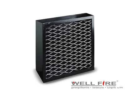 Der Glutkorb seitlich eignet sich hervorragend zum Braten von Fleisch auf dem Grillkamin.