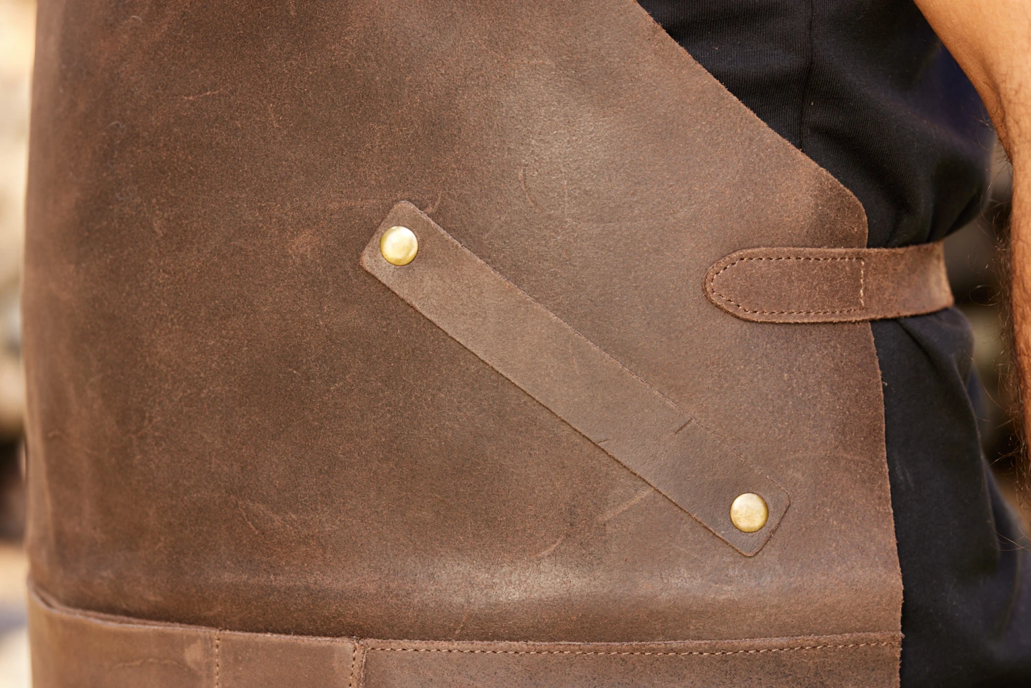 Praktische Details wie die zusätzlichen Leder- und Messing-Elemente zum Einhängen von einer Grillzange & Co. sehen nicht nur gut aus, sondern erhöhen auch die Funktionalität und ermöglichen eine uneingeschränkte Bewegungsfreiheit.