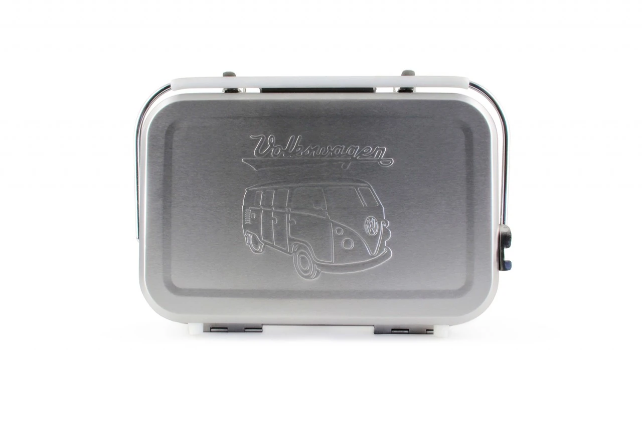 Da schmeckt die Wurst und das Steak doch gleich doppelt so gut. Der praktische Koffergrill zeigt stolz einen VW T1 Bulli auf der Seite und macht somit ganz klar: Hier grillt ein echter VW Fan!