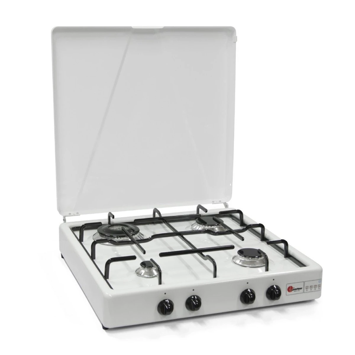 PARKER Vierflammen Kocher – weiß emailliert – Zündsicherung – 2,8kW, 2,3kW, 1,65kW, 0,9kW