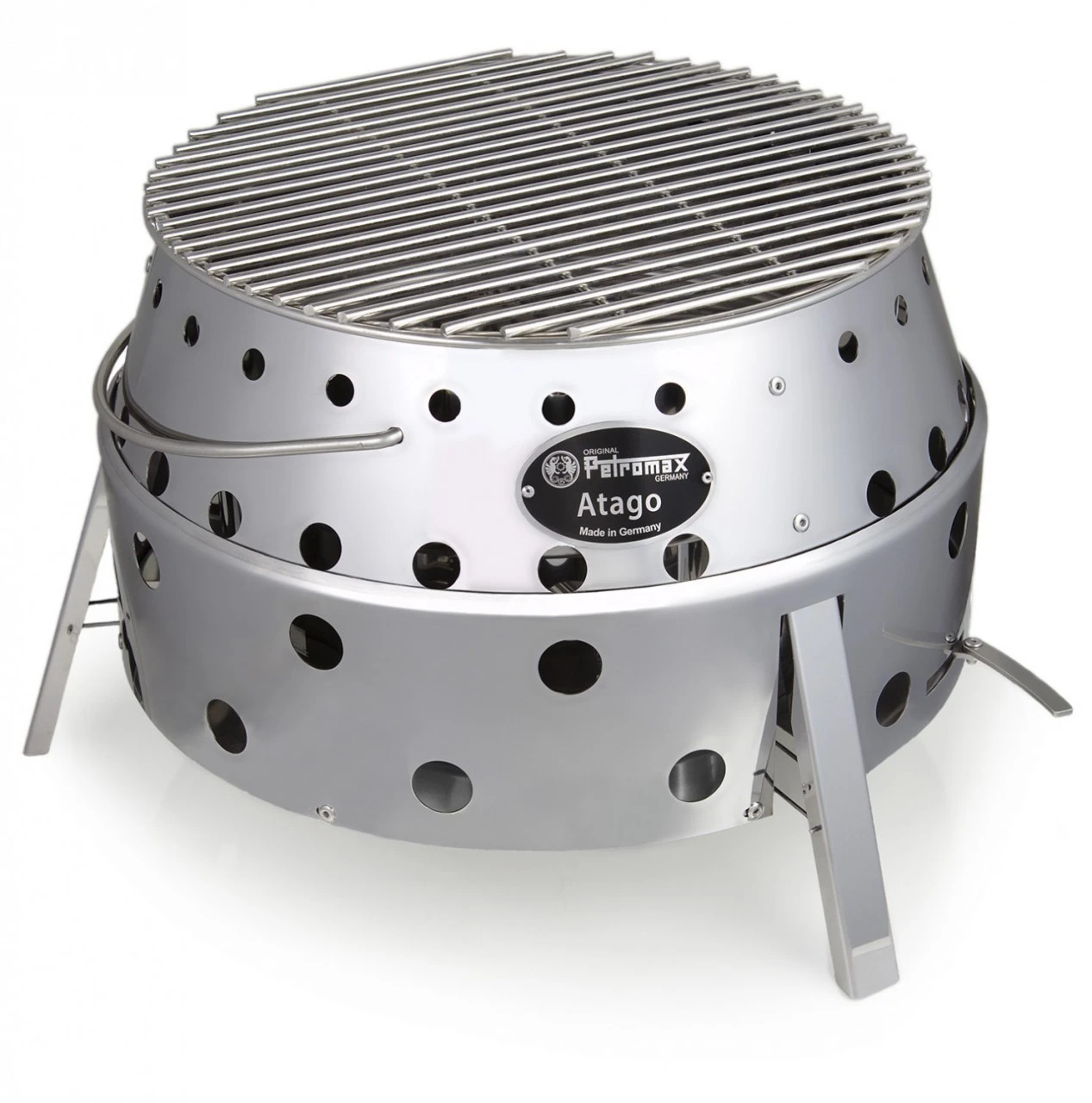 Der Petromax Atago ist aus Edelstahl gefertigt und wird in Deutschland produziert. Zum Anfeuern eignen sich Holzkohle, Holzkohlebriketts und Feuerholz.