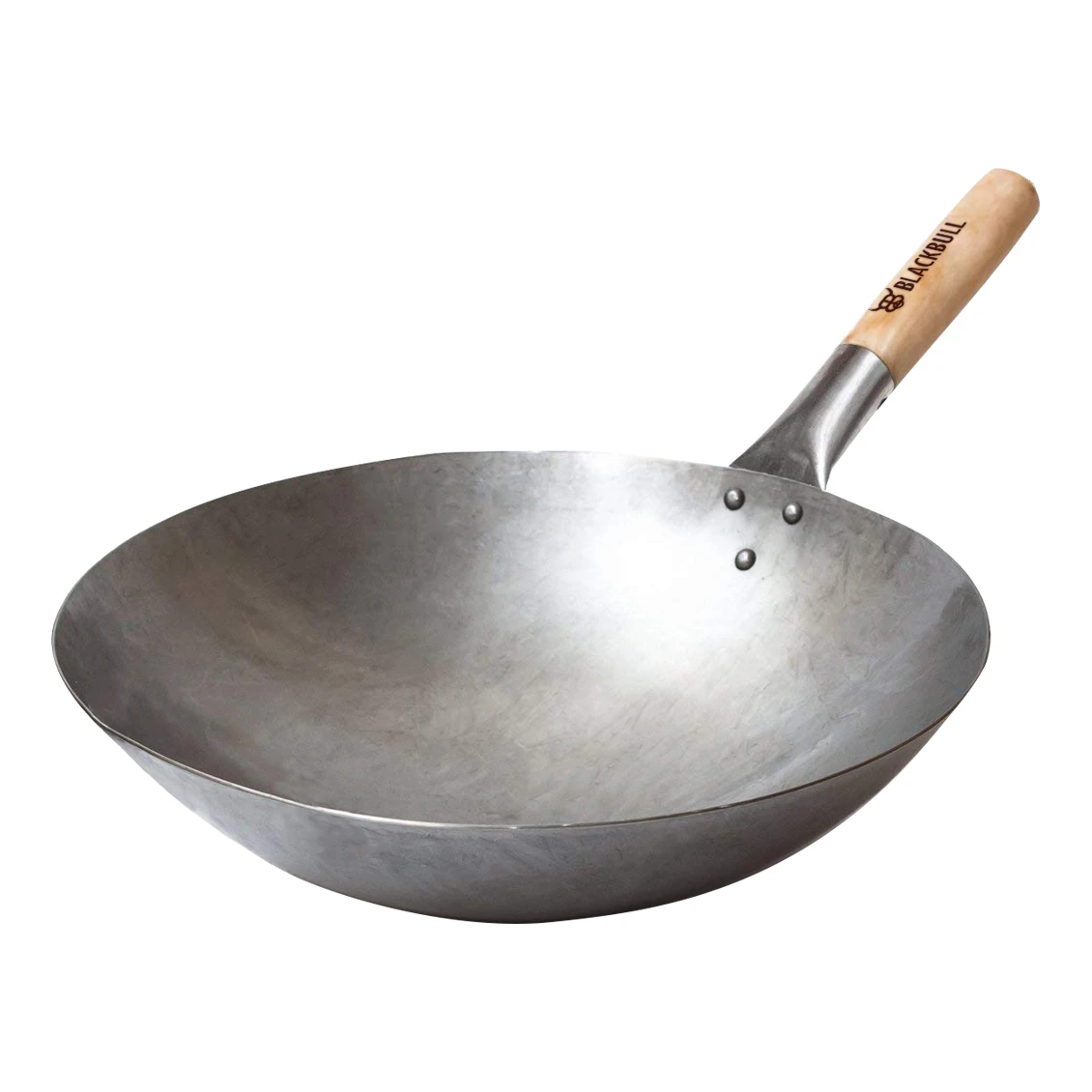 Traditioneller Wok mit edlem Holz-Griff und BlackBull-Branding.
